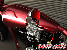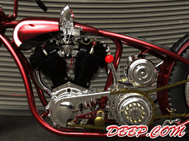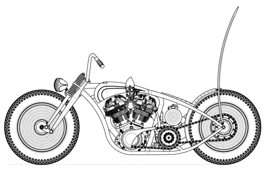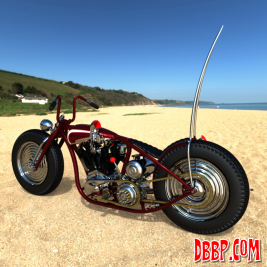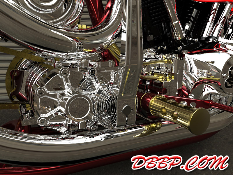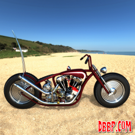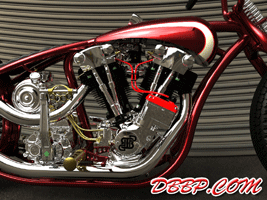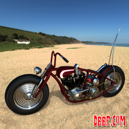 17 April 2021 Re-rendered in Keyshot 18 August 2009 Re-rendered in Hypershot 22 April 2008 Changed background of the renderings.... 18 March 2008 Added chaintensioner and midcontrols 11 March 2008 Added sissybar, kickstarter and beltcover. Changed seat style. 5 February 2008 Added pipes and changed the rear of the frame. Also added gascaps. 29 January 2008 Changed to Avon MK 11 tires, which have a very large diameter, so the bike became too high.. I changed the frame and forks to compensate for the bigger tires and added new handlebars and colour. 18 December 2007 Added new CrimeSceneChoppers "Rapide" headlight, changed front forks, added oillines and made a new oval tapered jockey shifter. 27 November Added old-style sparkplug wires, seat and accent stripe on tank 23 October Added the top tree of the forks and the handlebars. Changed the colour back, the orange was too "bling". Made a primary drive of the same 530 O-ring chain as the rear chain. Can't make a primary more narrow than that, and it looks cool too! 16 October I added one of those great new kickstarter covers by Baker, the one that looks like the front of a blower! also added rear chain and sprockets. Ah yes, and then ofcourse I changed the colour.... 2 October 2007 I added the front leg to the springer, made a version with only one set of springs to get that narrow look. Ofcourse the springs are thicker than normal. I also added 360-brakes, very powerfull and small enough to be almost hidden. Finally I added more of the linkage details to the Stromberg 97 carb. 25 September 2007 I added a Stromberg 97 carb, some cool wheelcovers, started on the forks 4 September 2007 I started with the top of a knucklehead engine mated to a set of alternator crankcases. The frame is made of tapered tubes and the tank is a severely cut up 3,5 gallon fatbob tank. Tires are 16" firestones.