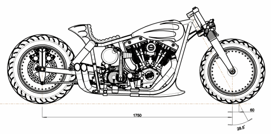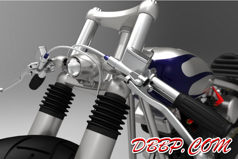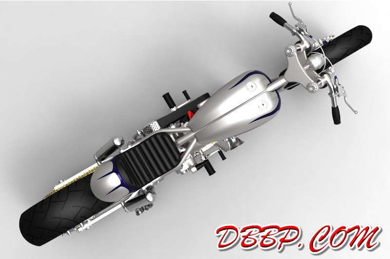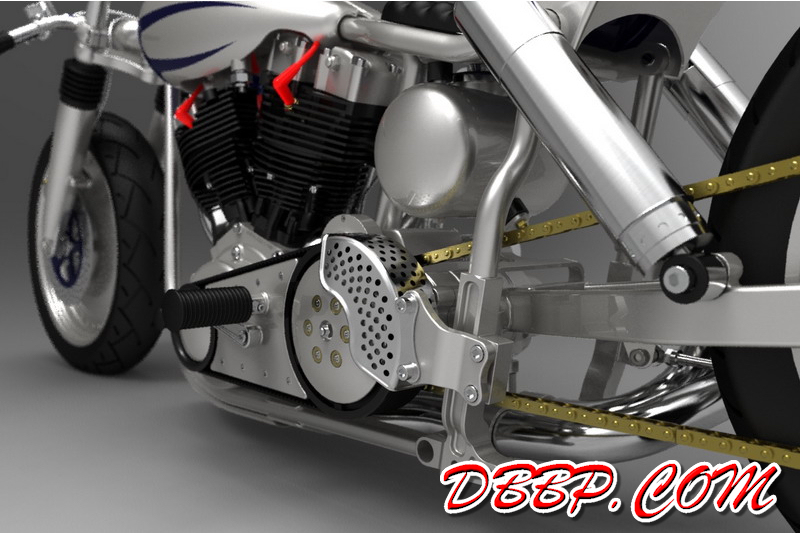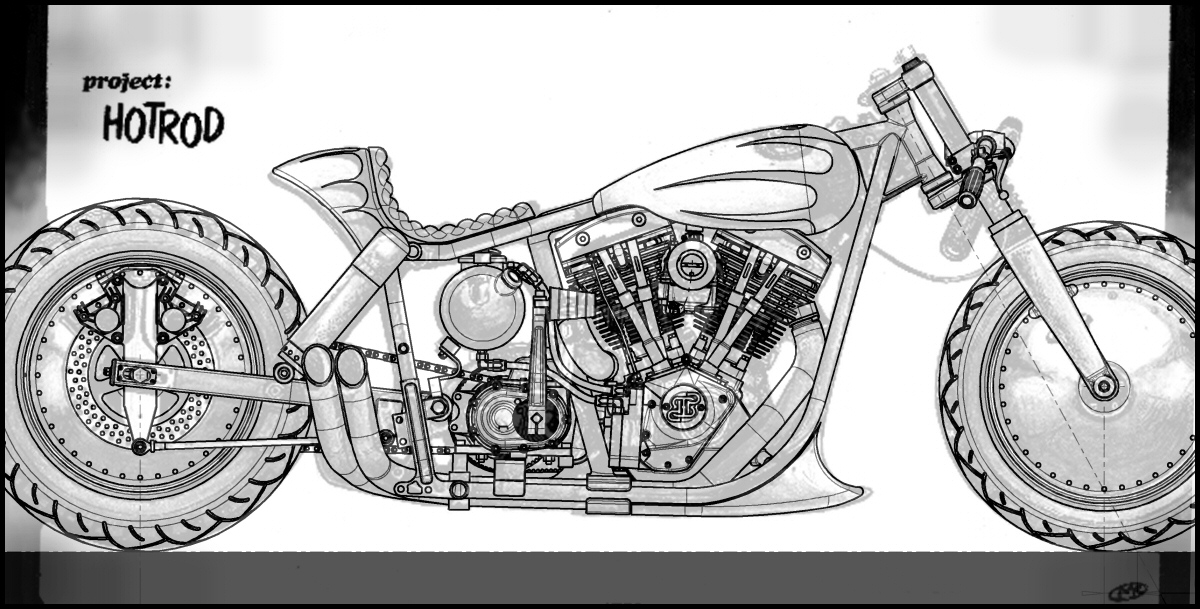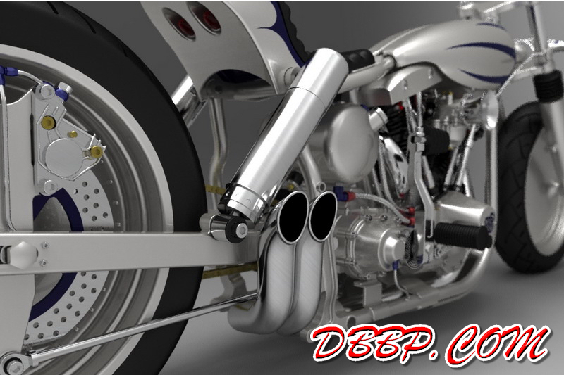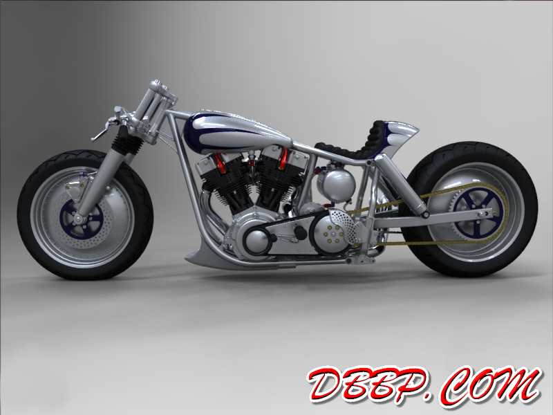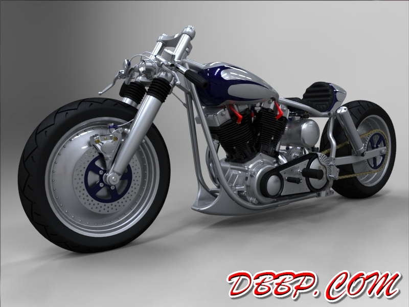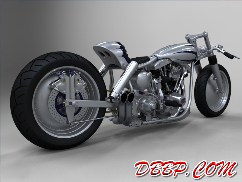 18 April 2012 Re-rendered all the images in Keyshot 8 July 2008 Added midcontrols and brake and clutch lines 24 June 2008 Added forkrubbers, handlebar comtrols rear brakelines, footrests, beltcover 17 June 2008 Added fuelvalve, fuelline and "chinspoiler" plus some small details. 3 June 2008 Added oillines & spark plug wires and added rivets to the wheels... 27 May 2008 Added rear chain and sprockets, modified frame to clear chain, added front brake and rear oiltank mount. 20 May 2008 Added front and rear lights, added seat and kicker-pedal and other small details 13 May 2008 Worked on seat, clipons rear brake disc and scallops 6 May 2008 Completed rear pipe, modified frame to make room between lower frame rails for pipes, worked on belt, rear axle, tank, kickstarter 29 April 2008 Worked on rear brakes, added carb started on pipes that run between the lower frame rails to allow extreme cornering without scraping the ground 22 April 2008 Made the gastank with cutouts to wrap around the engine, made fork trees, modified frame neck and front motormount 15 April 2008 Modified frame further to match sketch, added oiltank, primary belt, forklegs and made the swingarm a little bit thicker..... 8 April 2008 I lowered the frame a bit under the seat, added old style Brembo brake calipers and brake disc, and added valvecovers. 2 April 2008 I added an extended swingarm, wheels and rear shocks, using the old 1988 drawing as a guideline all the time. 25 March 2008 I used some CAD models I had made for previous projects, such as the swingframe, Shovelhead engine and 4-speed gearbox and positioned them on top of the old drawing. The wheels were a bit more difficult, the closest existing tires I could find were 210/50 x 17 rear and 120/90 x 17 front