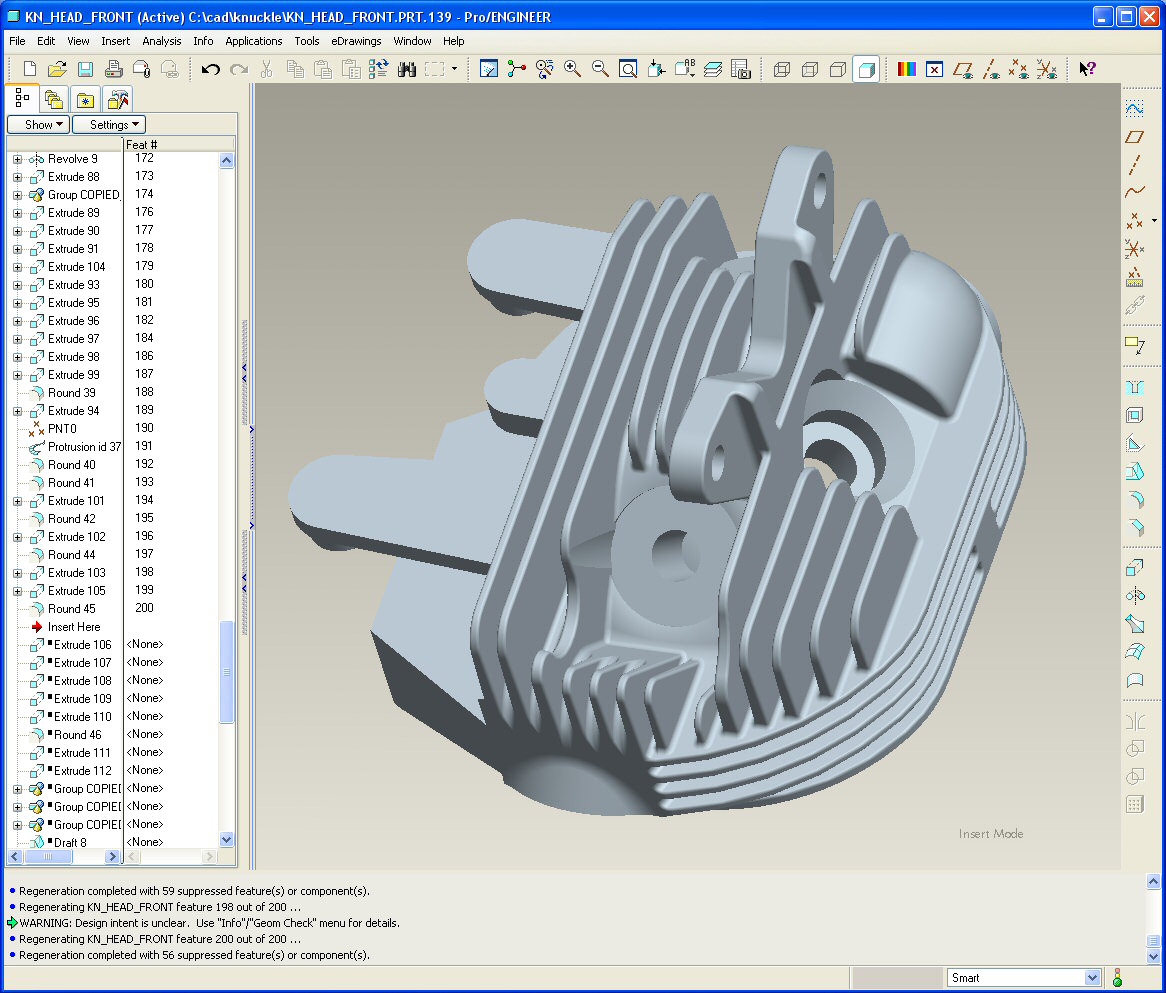 week the knuckle cylinder head had 132 features, this week I