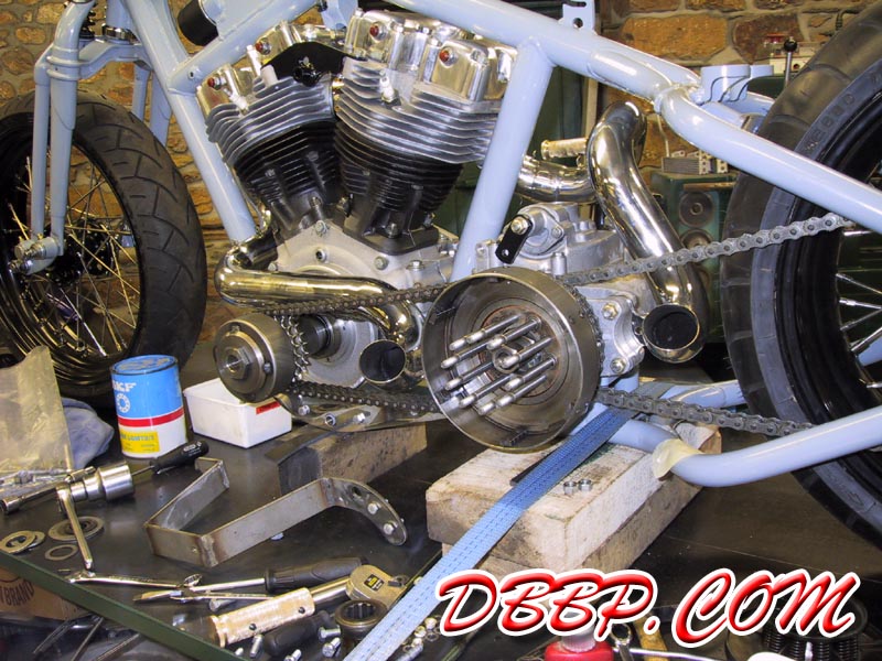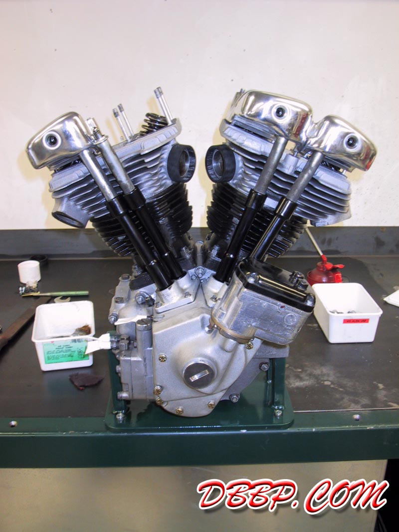 The unique valvecovers are made from stock shovelhead valvecovers.