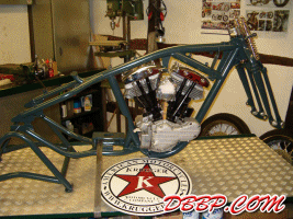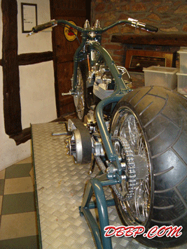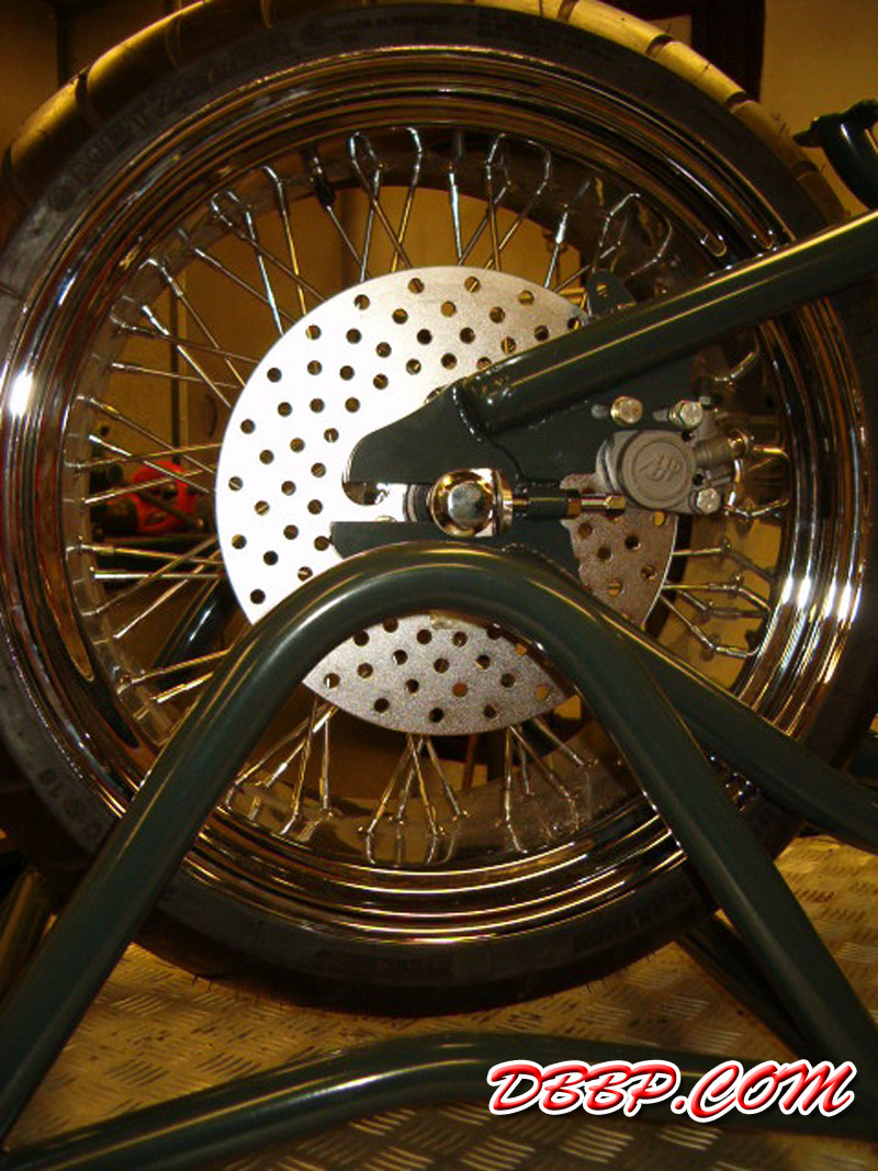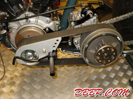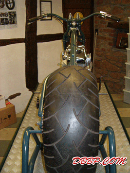 Fred can make this frame for any engine/gearbox combination and for fat or narrow rear tires. In this case the rear wheel is an 18" with a 240 Metzeler tire.