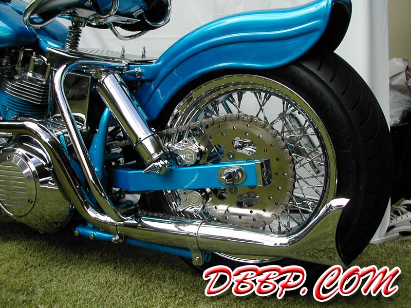 custom swing arm and drive side brake set up. The rear rim is