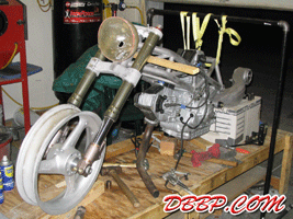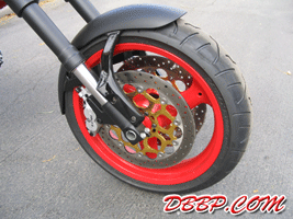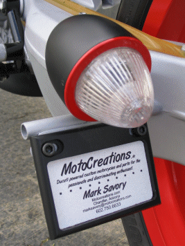 A good friend of mine, Rachel Dwyer, had just finished the 2003 Iron Butt Rally on her Ducati Monster. After reading her journals at www.tigerracing.net, I began to wonder what a Ducati Monster would look like if it had fairings and more "eye candy” in terms of styling. Thus on September 18th, 2003, I began the initial image concepts that became the basis of all of this. (see www.marksavory.com under [motorcycles]) Sometime later, I started seeing my Ducati concept images appearing across the Internet internationally. After seeing the response that my Ducati concept images were creating, I decided to create some more for the fun of it. What I tagged as the “Tigre Rapido” in honor of my friend Rachel in Seattle was thus created and posted on my website. Almost immediately, I determined that given the response, I had actually better start building one for myself before someone else does. The artwork evolved again to a more refined product moving away from the Ducati seat/cowl structure. Ultimately I decided to design a Bimota influenced one-piece bodywork to differentiate it from the standard Ducati and Harley bodywork. The prototype stage – let’s just say that we mocked up various concepts and built numerous frames until we derived a frame design that actually worked (and looked good with a rider on it). After playing in the backyard and small shop and building prototypes there, I figured that if I was going to do this right, I had better get a real shop and move my tools (and buy more equipment) and do this at a professional level ala my vintage Ferrari and IMSA GTP racing background. The first thing that we did was spend the first few weeks building a quality chassis jig that we could tweak any wheelbase, head angle and any tube location on. Although not shown (proprietary!), it now allows us to build a truly professional quality frame that is in perfect alignment at all times. We can replicate any existing Ducati chassis or build anything custom with this frame jig and it is a very important component of what we will be able to do in the future. The new bike then got underway. With the new equipment and new frame jig, we were able to miter and make perfect cuts the first time. TIG welding was easier as the tubes fit perfectly with zero gaps. We also evolved the frame from 1 inch main tubes with ¾ inch cross tubes to 1 ¼ inch main tubes with 1 inch cross tubing – partly for strength reasons but to also to keep our frame from being misidentified as a standard Ducati Monster frame. Then came the bodywork. Since the stock Monster fuel tank design in the past hadn’t worked, we decided to build our own from scratch. Somewhere along the line, we decided to try a shortcut and utilize a 996 biposto seat. After many days of consternation and frustration in creating a rear cowl design that looked good, we finally ditched the seat and went back to the original seat concept. One of the primary missions behind this project was not to utilize typical aftermarket parts or Harley catalog parts on this motorcycle. Thus everything was designed and built from scratch. Also at times this project has sounded like a Discovery Channel Biker Build off show in terms of what could go wrong. The seat upholster created a seat that didn’t fit the bike. We came home and tore it apart in the hopes of trying to salvage something . We built our own instead the day before the show! We had major problems with the motor that had been gone through only a few weeks before. Our paintwork had major problems just hours before the show – originally all the black was a deep gloss black across the body, headlight, front fender and taillight. Literally hours before loading the bike for the show, we ended up repainting all the gloss black paint to a semi-flat black color. Hours before leaving for the show, I pushed the bike outside for some quick pictures. This is the first time we actually had seen the bike with paint and partially assembled. Friday night at 11:57pm, the bike is loaded onto the trailer finally even though it is not fully finished!! We head off from Phoenix, Arizona to Long Beach, California for our debut of the bike. We get to the Los Angeles Calendar Motorcycle Show at the Queen Mary grounds at 7:48am. At just a bit after 8:00am, we roll onto the grounds and start setting up the display and roll the bike off the trailer. My brother is still in the Suburban attaching the seat for the first time to the bodywork. To put it mildly, we are dead tired. After spending literally days being awake and then driving all through the night, we just want to get some sleep. But the gates open at noon and the crowd starts coming in. The look and comments from the people enlivened us almost immediately. We are truly surprised at the favorable comments we get – from the crowd, from the publishing media, but also from the big name Harley custom bike builders that are there. (More details in the future as there are some surprises!!!) The comment we received a lot at the show was – look at what they did to a Ducati Monster! And the first thing we casually mentioned back was that the only true Ducati Monster part on this entire bike is the front fender itself. The front and rear suspensions are originally 996 components. The engine is actually a 900SS motor. The only actual aftermarket part on the entire bike is the FCR carburetors. We made the rest: the frame, the component locations and packaging structures thereof, the bodywork, the rearsets, the clutch cover, the exhaust system, the taillight, the headlight and so much more. We built it all to not only be different – but also in the hopes of inspiring others to take note and to build something different themselves. Sunday night and the show debut is finally over. We are exhausted. The bike is loaded and back to Phoenix we come. In looking back, we thought there might be a small amount of interest in a “sport cruiser” that utilized the strong hallmark d
