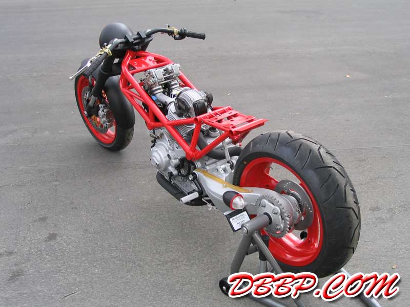 Monster Chopper Hi- As for a European "Street Fighter" concept you just highlighted -- I just rolled mine out to the public a few weeks ago. Not exactly Harley powered -- but it is heavily influenced by the chopper community (while still retaining most of it's Italian/Ducati heritage). It's a fun bike to ride -- the suspension and engine components are race proven and the frame has ZERO flex in it due to all the trellis-style tubing. Not exactly everyone's taste I will admit -- but it definitely is different than anything else out there. Keep up the great work on your website! Thanks Mark Mark Savory The Story by Mark Savory:
