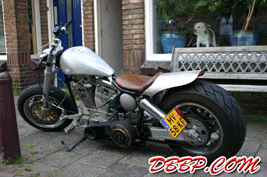 Above you can see how Jochems bike looked last year, below are pictures I took a week ago. Jochem put in an upsidedown fork, brembo discs, a stainless steel oiltank made by Aad and me and 2 small headlights.