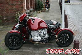on his recently built sidecar BMW,