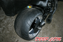 used to run a 300 tire in his bike but now he wanted to upgrade