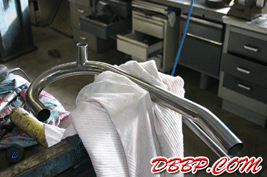 Aad built stainless steel pipes and turnouts, I mounted the taillight and worked on the wiring. Johan worked on the carb linkage, next Sunday we will show the bike for the first time at the RMC Choppershow, the week after that in Mainz, Germany