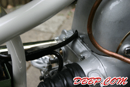 Modified the centerstand for easier operation, changed the angle of the springs, removed the chrome from the intake scoops, installed thicker battery cables and many more small things to get the bike ready for Norrtelje.