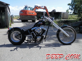 | A little update on the neverending project, haha. I have taken the rebuilt Shovelhead engine from this bike and am using it in my Electraglide at the moment. For this bike I bought a used Evo engine; you can pick these up pretty cheap nowadays. I found some tank-decals on the internet and put these on the temporary Sportster tank, under a layer of clear coat. |