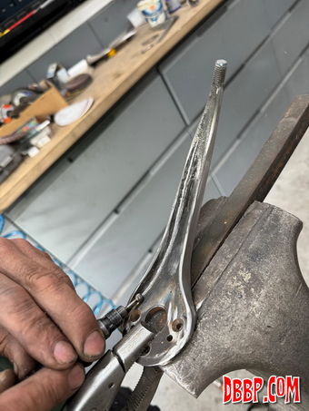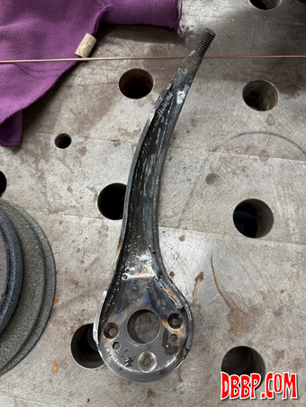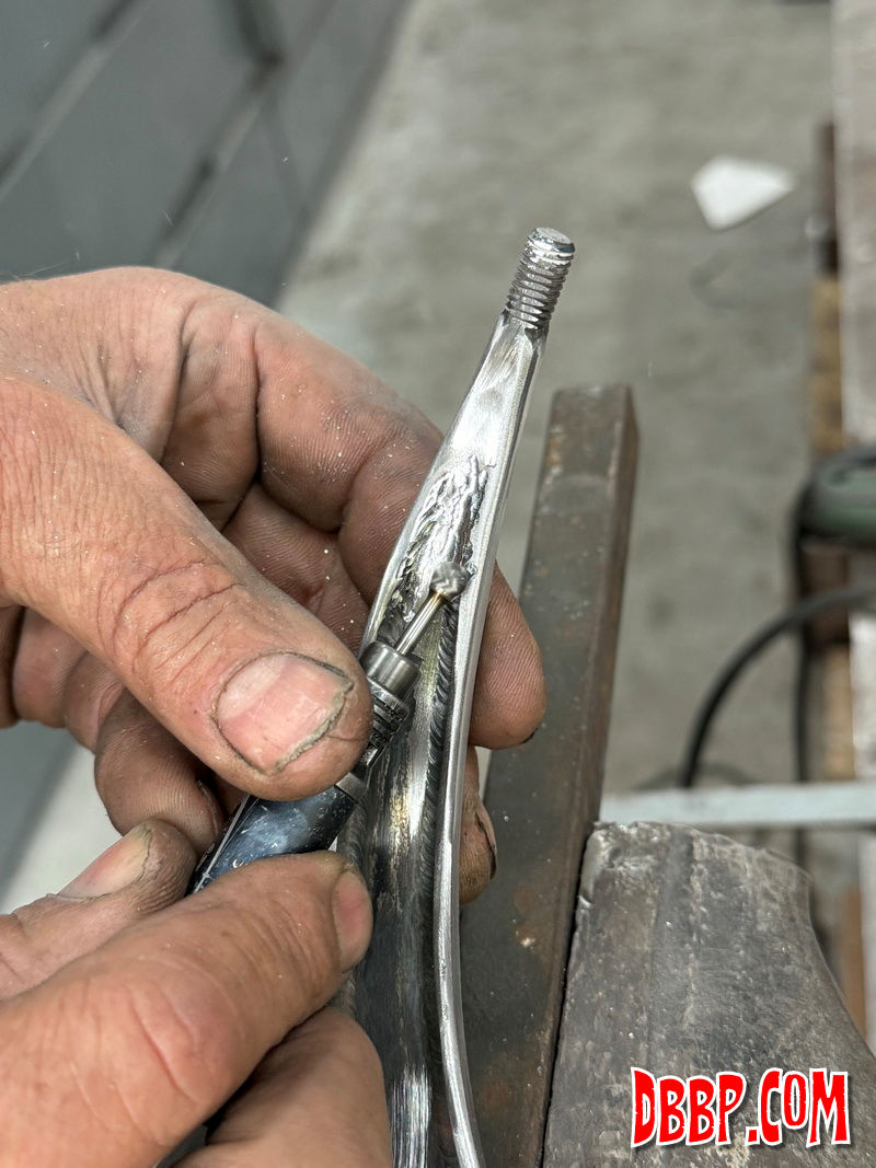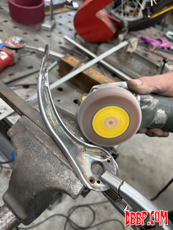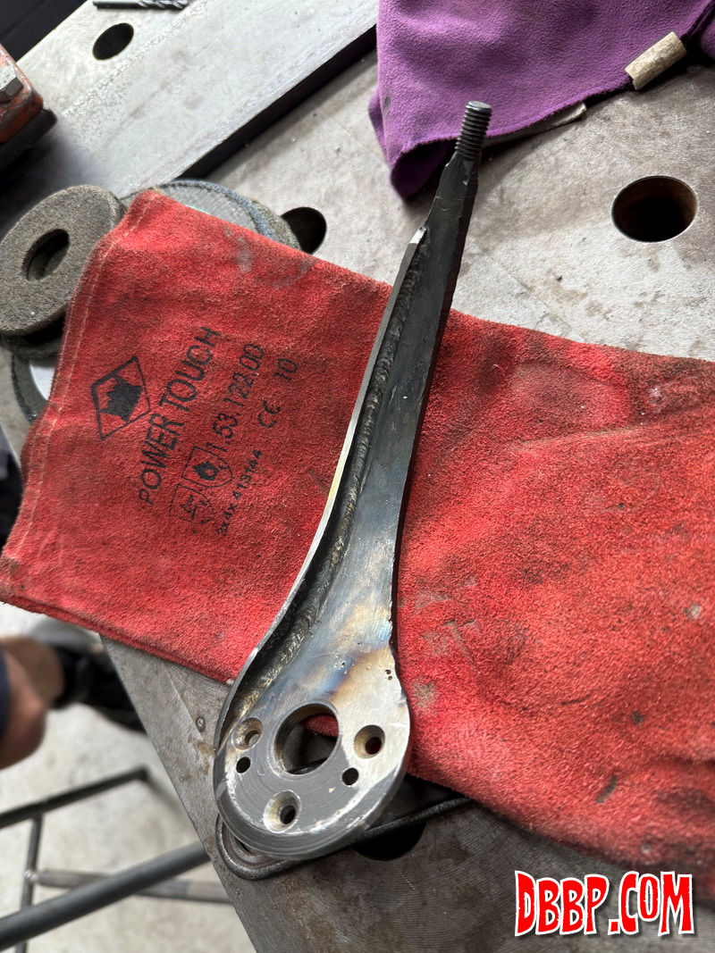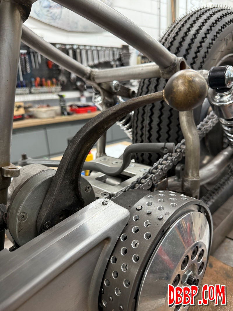 After welding and grinding we texturized the part and using heat and oil gave it a nice old looking finish. We found and old brass lever with the perfect ball on it for the shiftknob, so we cut that off and drilled and tapped it. We like how the shifter turned out, it cost us nothing but a few hours in the workshop!
