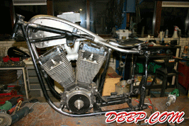 Aad removed a bunch of unneccesary brackets and added a few new ones; the neck area was cleaned up by cutting out part of the casting and welding in a piece of tube. This is actually stronger than the stock neck and it has a nice clean look.