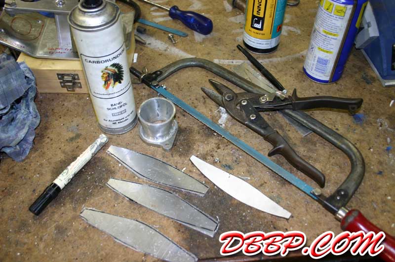 template to cut 4 pieces of 3mm aluminum sheet. After annealing