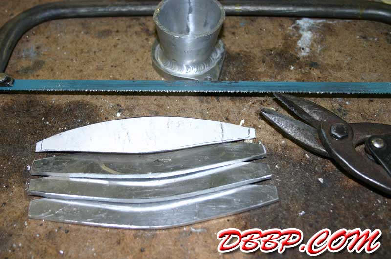 and sanded the aluminum shapes using the cardboard template, bent