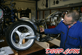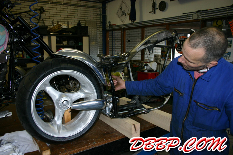 swingarm would not fall off, Aad used a REALLY BIG welder to