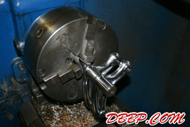 aluminum blocks to prevent damage) , then back in the lathe