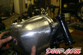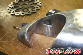 Aad filled up the remaining pieces with sheet metal, the little opening behind the carb-cutout is to make room for the choke. In the meantime the Tolle pop-up gascap arrived