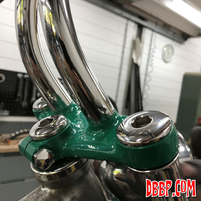 polished and the fork and frontwheel are mounted in the frame.