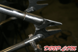 Lots of welding and grinding to make the axle plates look like castings, the frametubes are sleeved and smoothed into the axle plates.
