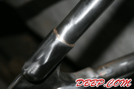 As a finishing touch, a copper bead around the connection between frame tube and "casting" just like on the stock neck of the frame