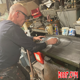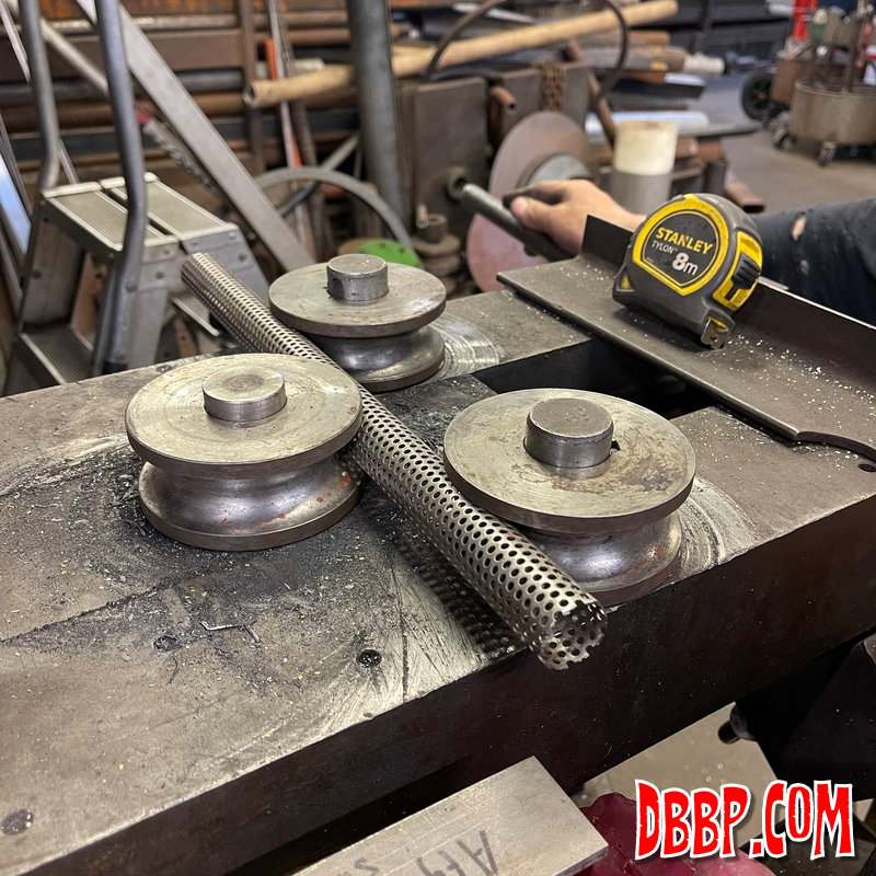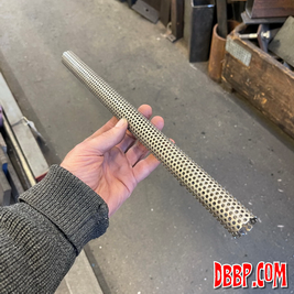 We started by making some curved baffles from a flat sheet of perforated steel.