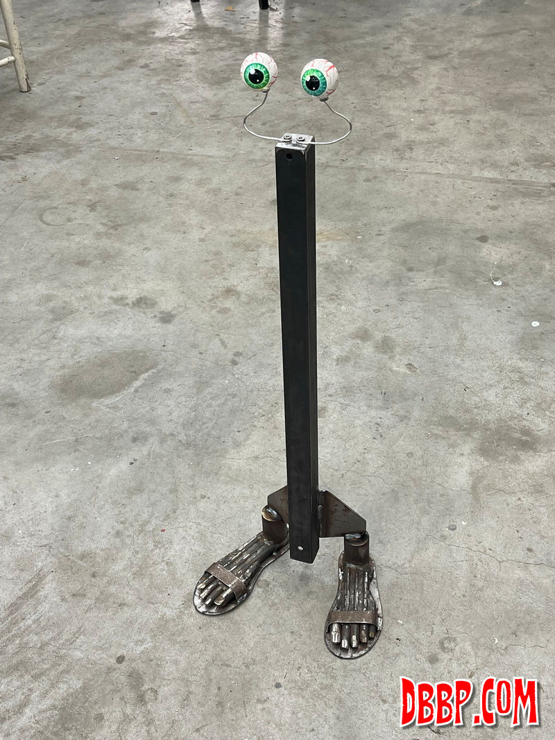 from aluminum bar. His wife Nicoline handpainted the eyes. |