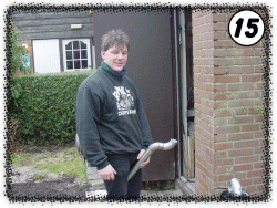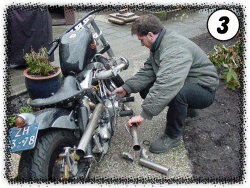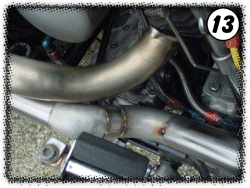 because the kickstarter, the rear pipe and 14) A 10 mm thick lump of stainless welded to the back of the new pipe for a hidden mount 15) Well, this is Hans, the guy that welded these