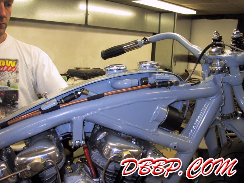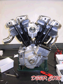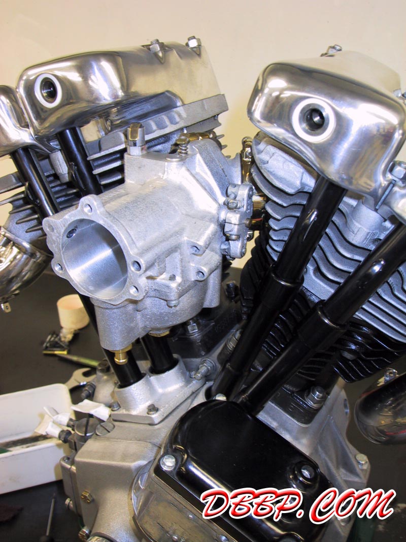 The unique valvecovers are made from stock shovelhead valvecovers.