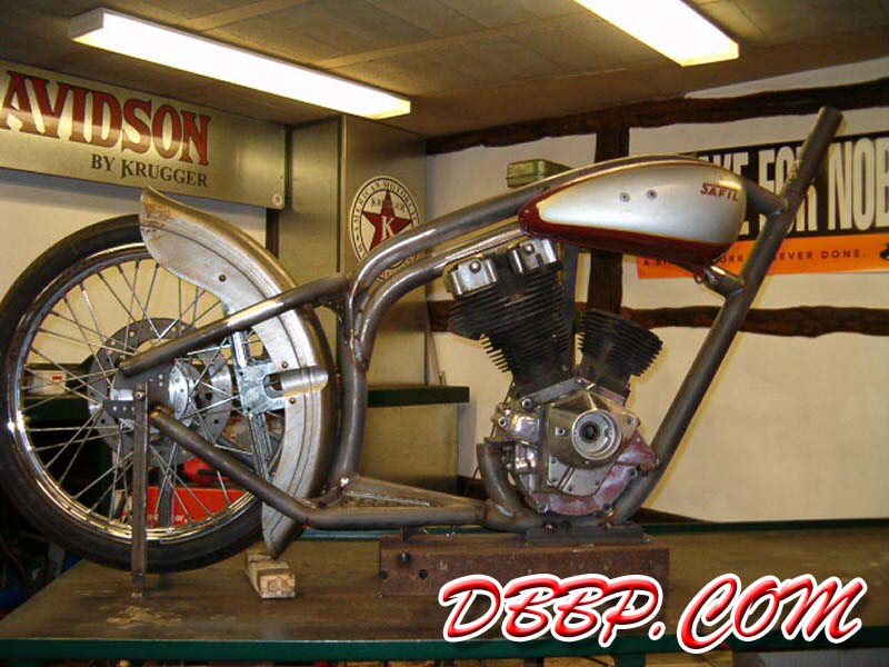 fender on the back of his homemade frame that also serves as the oiltank