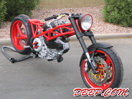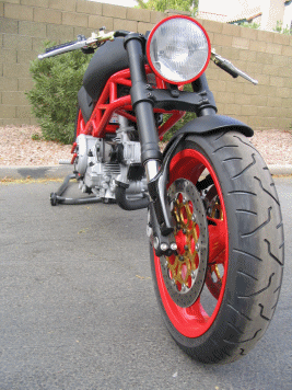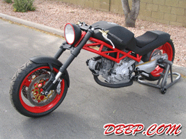 Monster Chopper Hi- As for a European "Street Fighter" concept you just highlighted -- I just rolled mine out to the public a few weeks ago. Not exactly Harley powered -- but it is heavily influenced by the chopper community (while still retaining most of it's Italian/Ducati heritage). It's a fun bike to ride -- the suspension and engine components are race proven and the frame has ZERO flex in it due to all the trellis-style tubing. Not exactly everyone's taste I will admit -- but it definitely is different than anything else out there. Keep up the great work on your website! Thanks Mark Mark Savory The Story by Mark Savory: