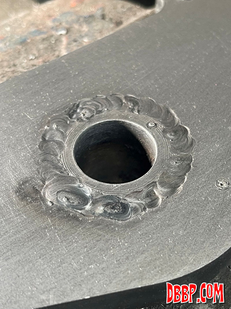 in the plate, and also cleaned up my uneven weld by machining