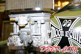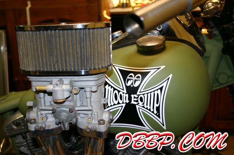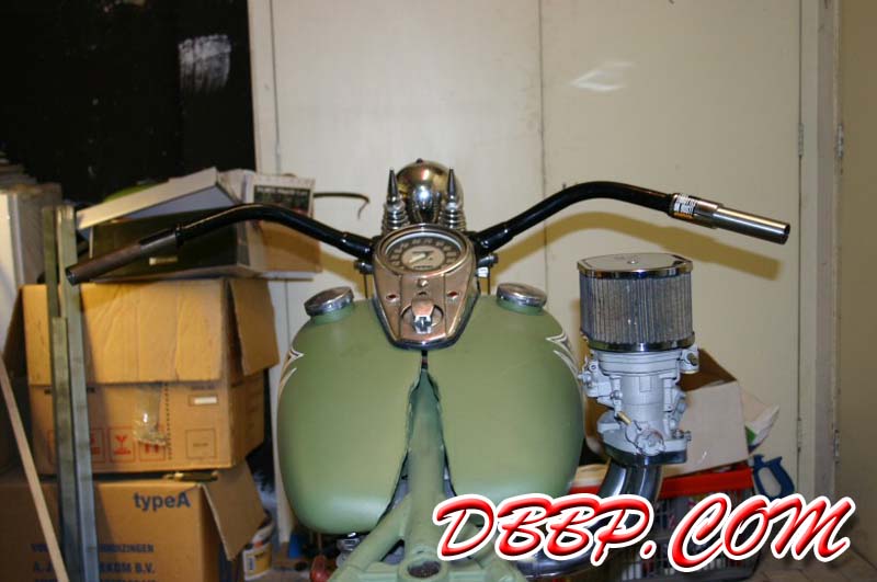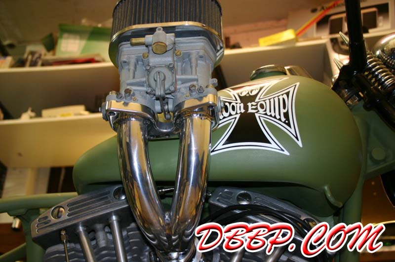 Test-fitting my prototype Weber IDF manifold on Jobert's bike