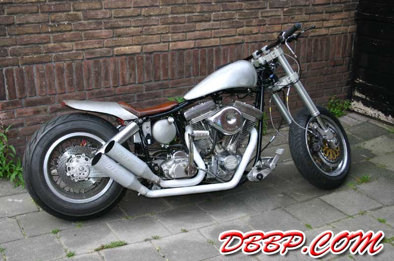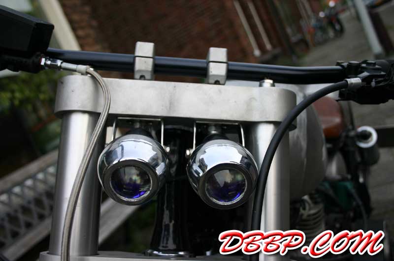 Above you can see how Jochems bike looked last year, below are pictures I took a week ago. Jochem put in an upsidedown fork, brembo discs, a stainless steel oiltank made by Aad and me and 2 small headlights.