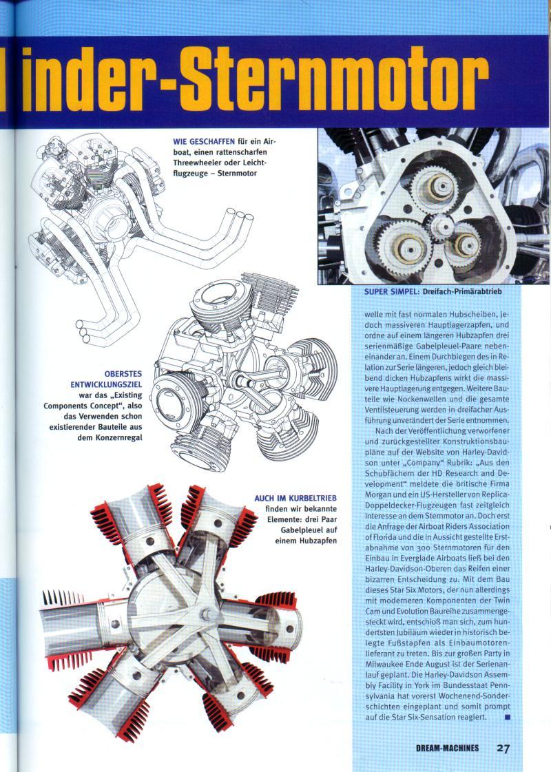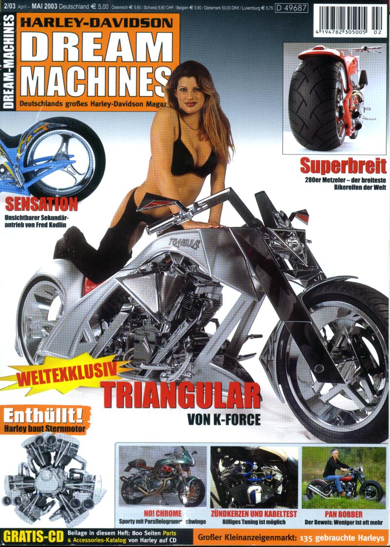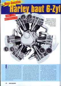 Dream Machines #2 April/May 2003 This German Magazine used the Starsix engine of my Cadbike #3 as an April Fool's joke, claiming Harley was planning to take it into production!