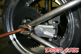 in the axle blocks of the swingarm. Aad made some brackets for