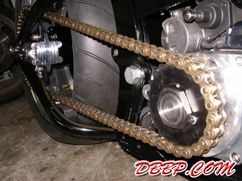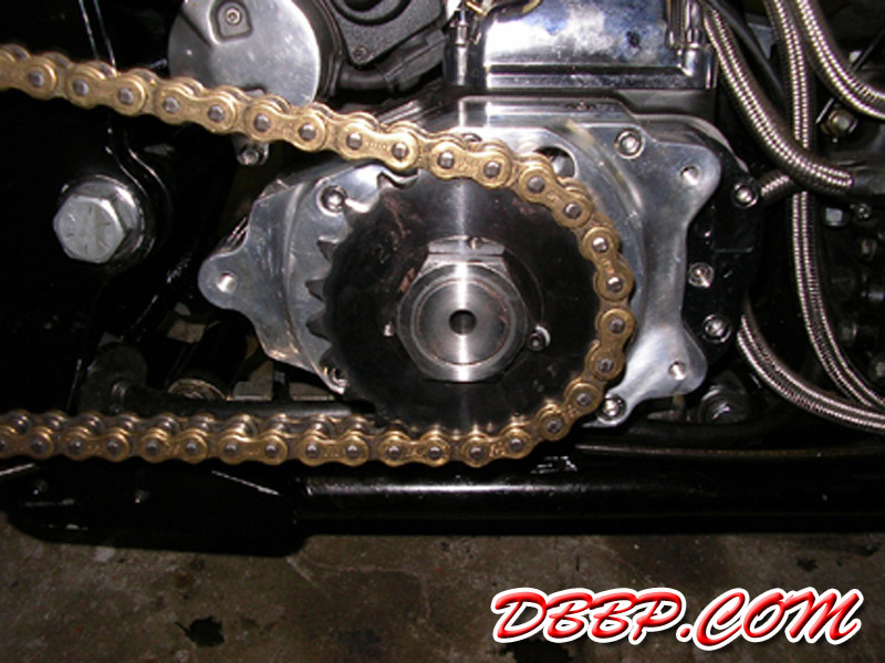 The RSD sprocket offset kit I designed uses an extra support bearing and for more gearing flexibility it accepts 4-speed chain sprockets, available cheap in lots of sizes.