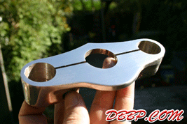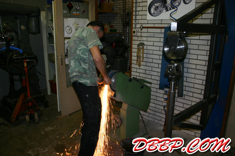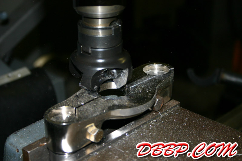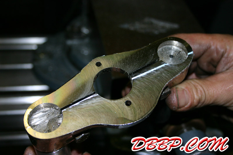 | After nickle plating the top tree of the springer looked like shit, I had bought it powdercoated black and this was what was underneath the powdercoat. We machined off a little bit of the top untill it was flat, beltsanded the "lip" off the front and sort of sculpted it into a nice smooth shape, now we will let the nickleplater have another try. |