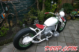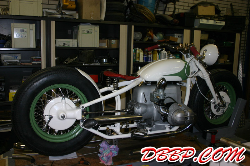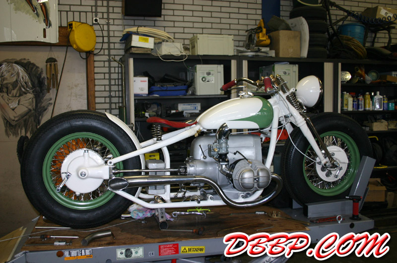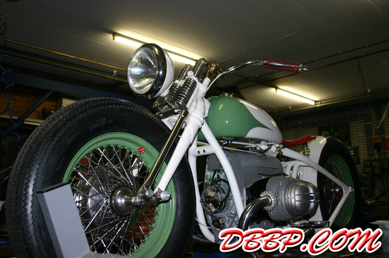Aad built stainless steel pipes and turnouts, I mounted the taillight and worked on the wiring. Johan worked on the carb linkage, next Sunday we will show the bike for the first time at the RMC Choppershow, the week after that in Mainz, Germany