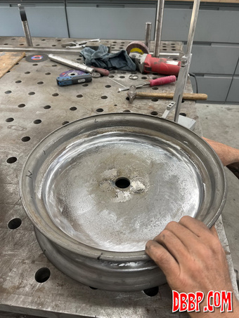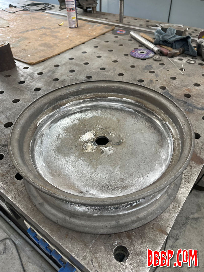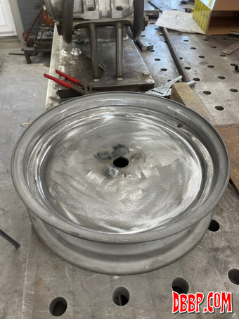 | Making a rear hub. We are using a hydraulic