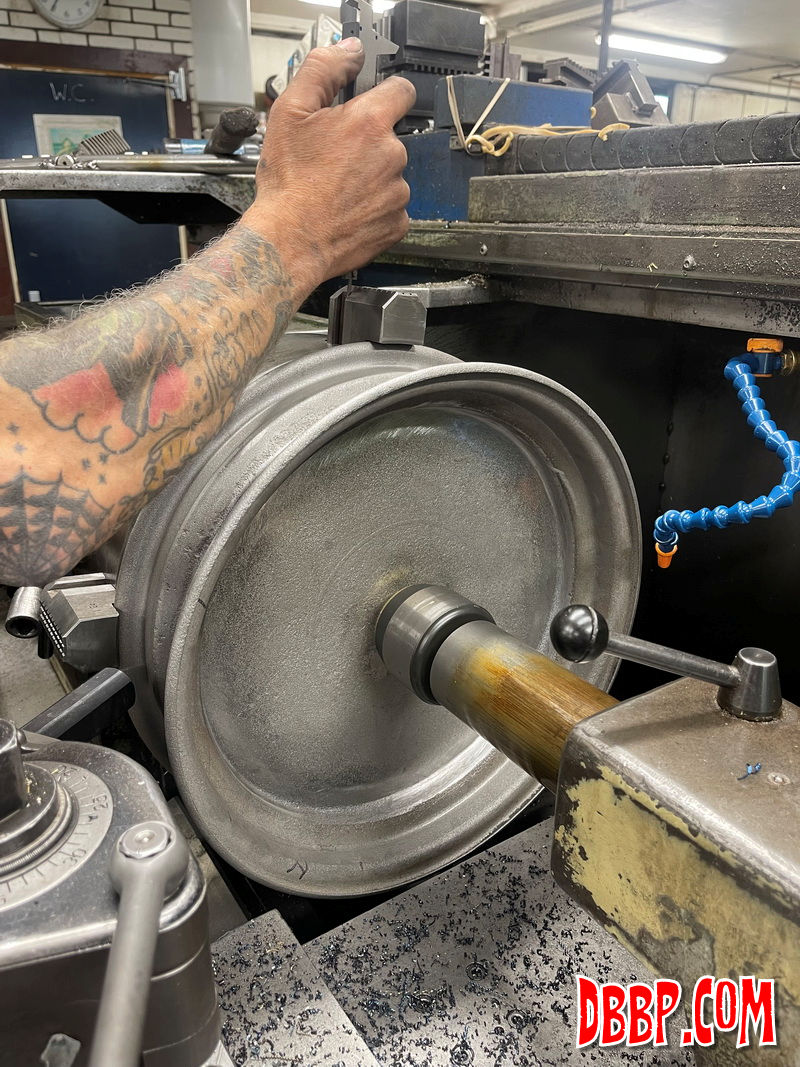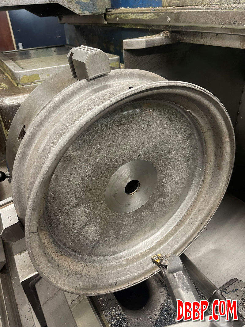 of the lathe and then machine the other side of the wheel.