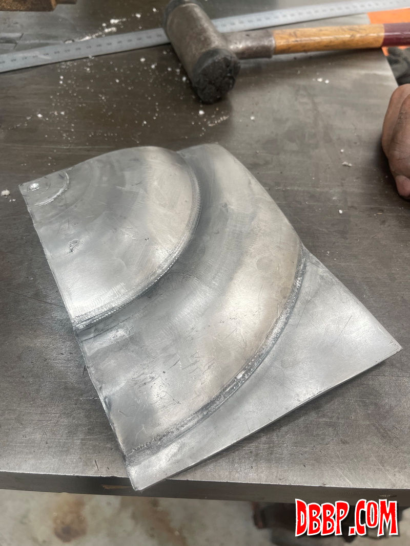 after checking the contour on the wheel with a piece welding