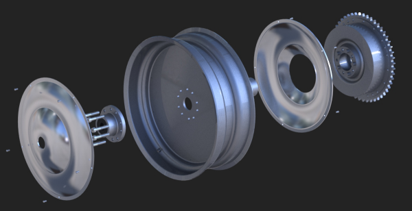 are being powdercoated in the same light ivory as the rim. For