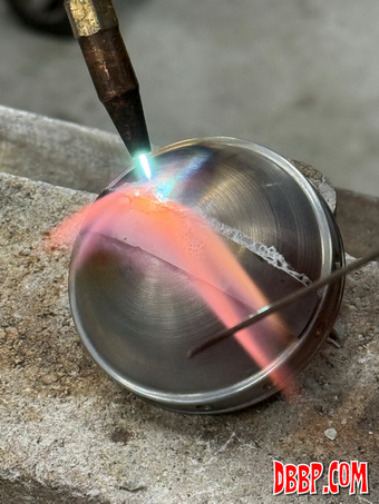 The dark color is achieved by heating it at the high spots are then scotchbrited.