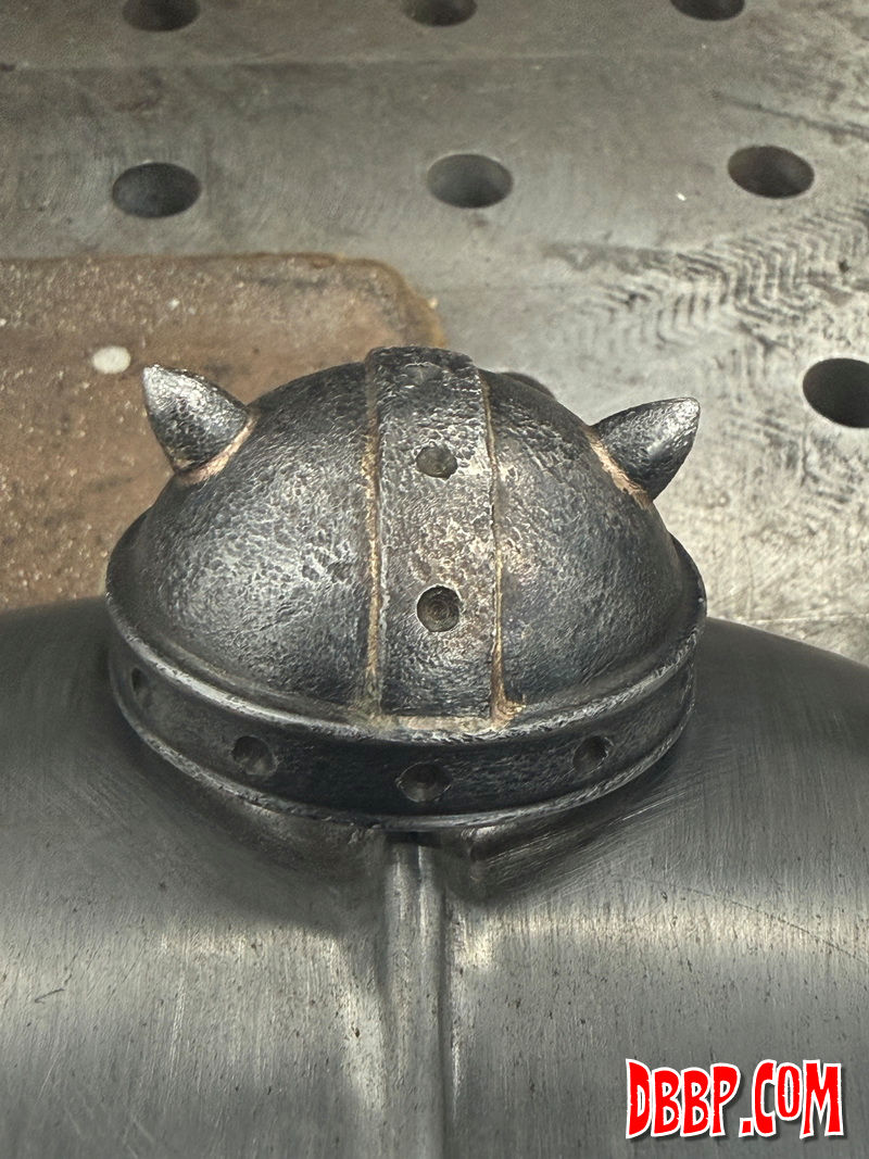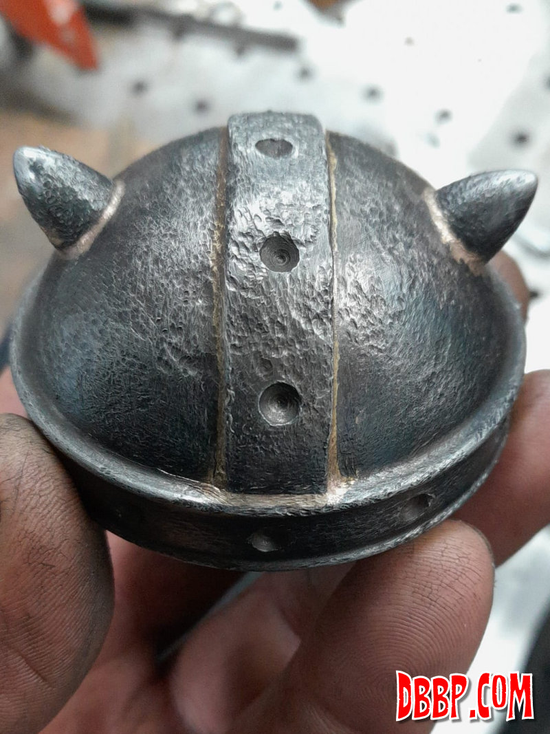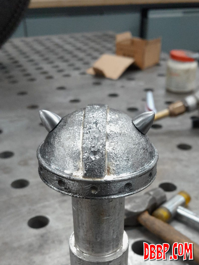 Using the inside bits of a stock gascap, we made a viking helmet gascap!