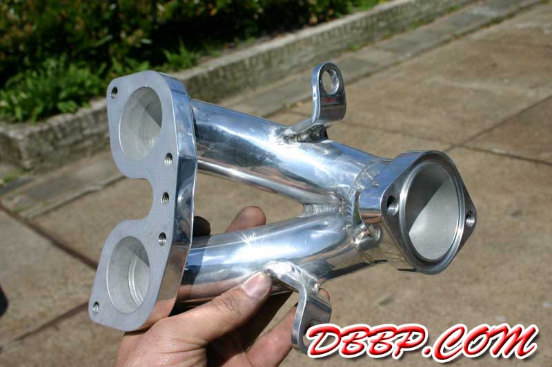 welded directly to the manifold. We hand sawed, filed, drilled