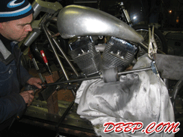 They created an improvised jig on the frame to guide the sanding