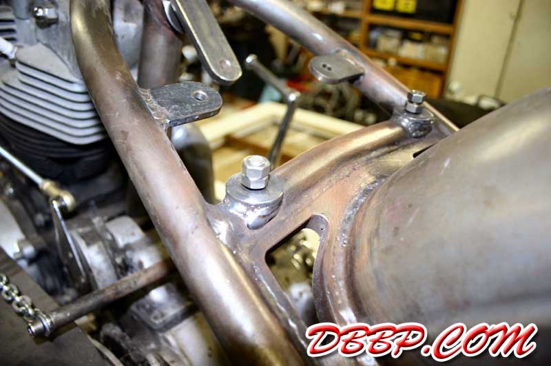 fit between the frame tubes instead of on top of them. We drilled