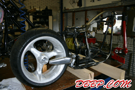 swingarm would not fall off, Aad used a REALLY BIG welder to