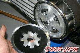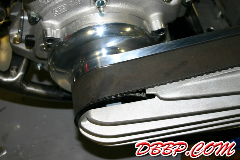 Alternator cover and beltplate have been polished and the mounting studs