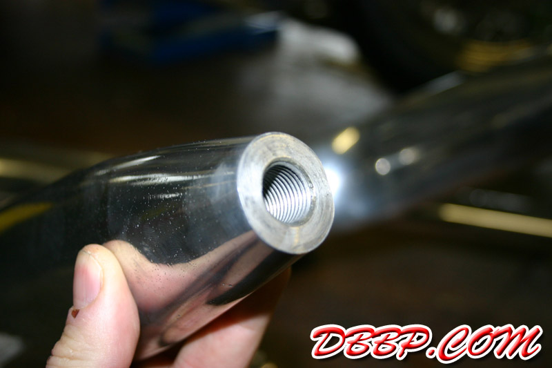 pipes welded in for the spark plug wires. The tank has been